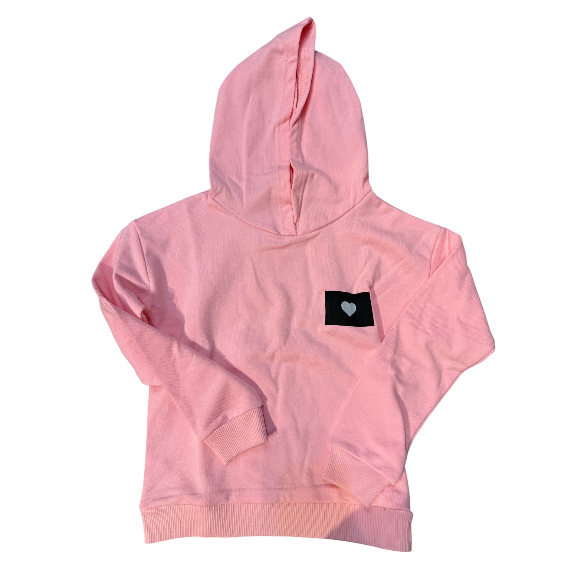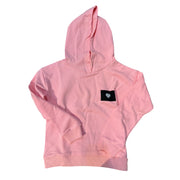 heather hoody with patch pink